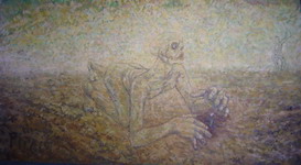 1961 - "L'ultimo dei saggi" 110x200 olio su tavola |